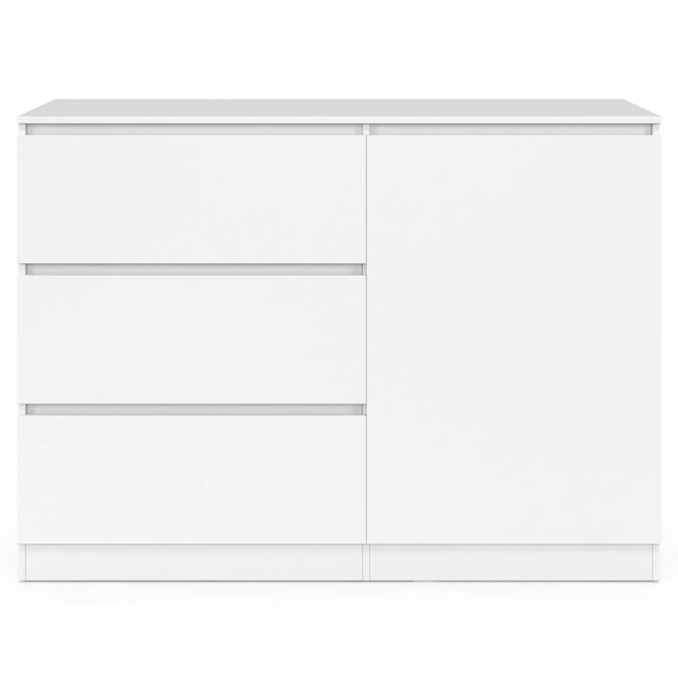 Commode 3 tiroirs + 1 porte TOMI 110 cm bois blanc