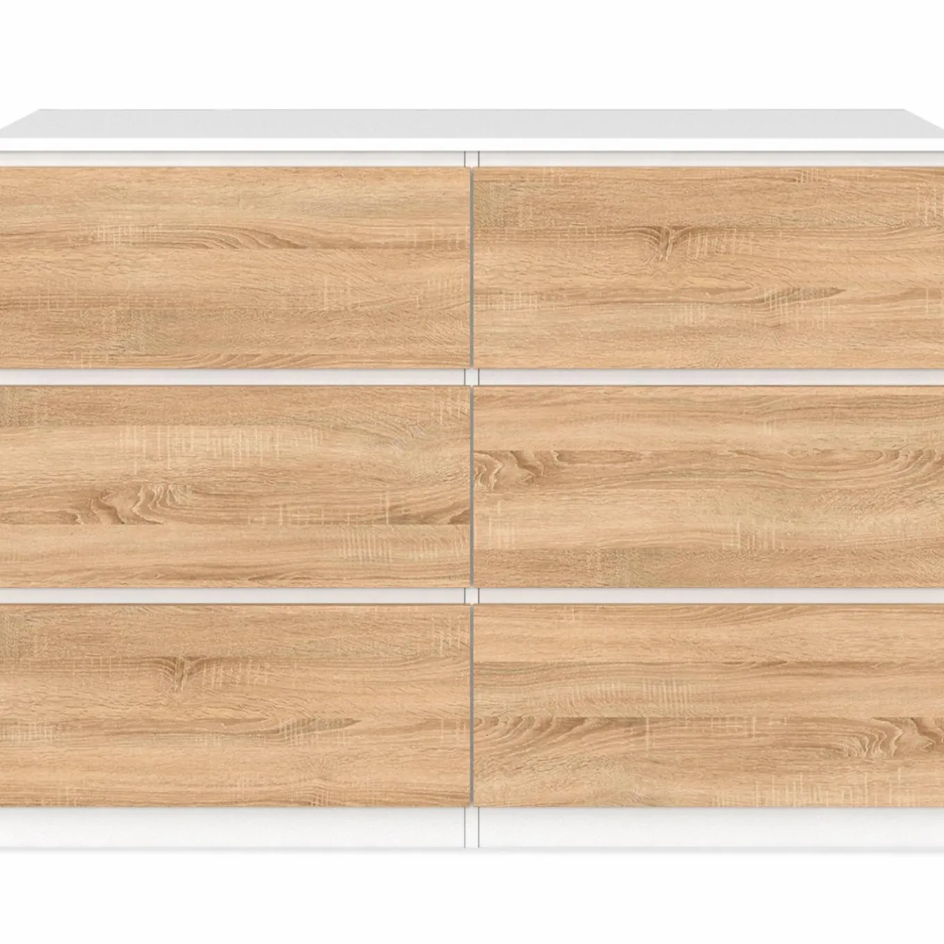 – Commode 6 tiroirs TOMI bois façon hêtre et blanc