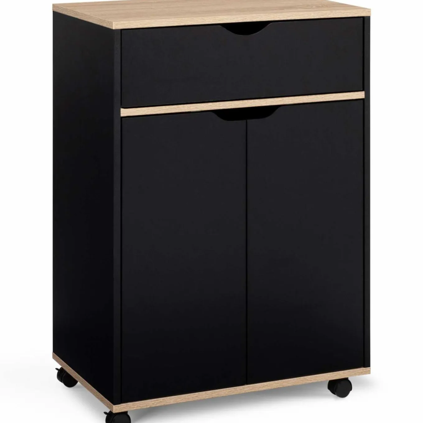 Desserte de cuisine COSY placard avec tiroir bois noir et plateaux façon hêtre L.60 CM