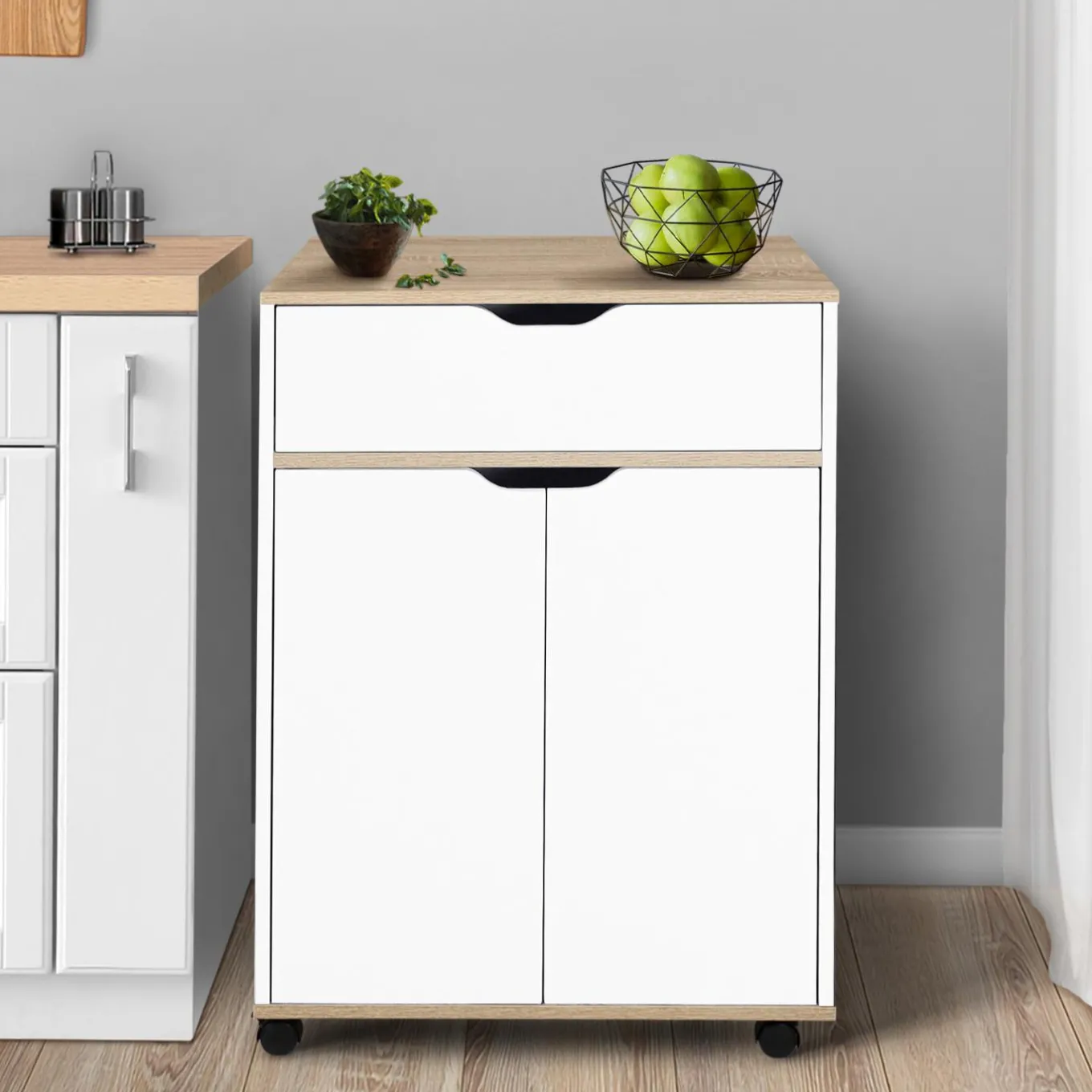 Besoin d’optimiser l’espace et le rangement de votre cuisine ? Laissez-vous séduire par la desserte de cuisine à roulettes 60 cm bois blanc et plateaux façon hêtre, design et fonctionnelle, à prix doux !