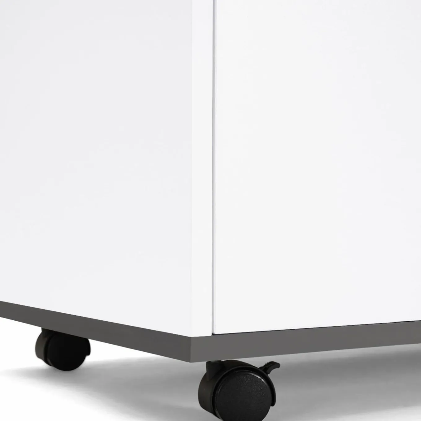 Grâce à son côté bicolore blanc et gris, cette desserte de cuisine à roulettes apporte une touche contemporaine à votre cuisine et se marie parfaitement avec votre décoration intérieure. Ce meuble peut aussi trouver sa place dans une salle de bains, une buanderie ou encore un cellier.