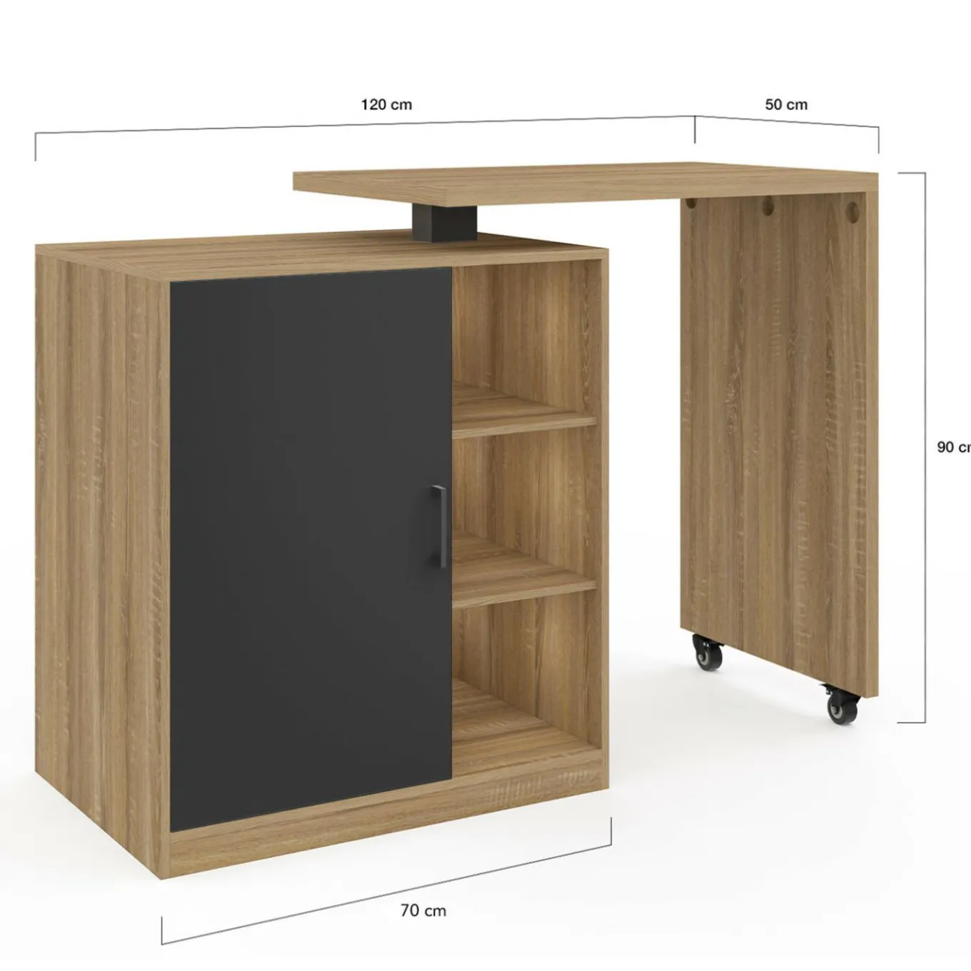 - Dimensions globales : Longueur 80/120 x largeur 50 x Hauteur 90 cm