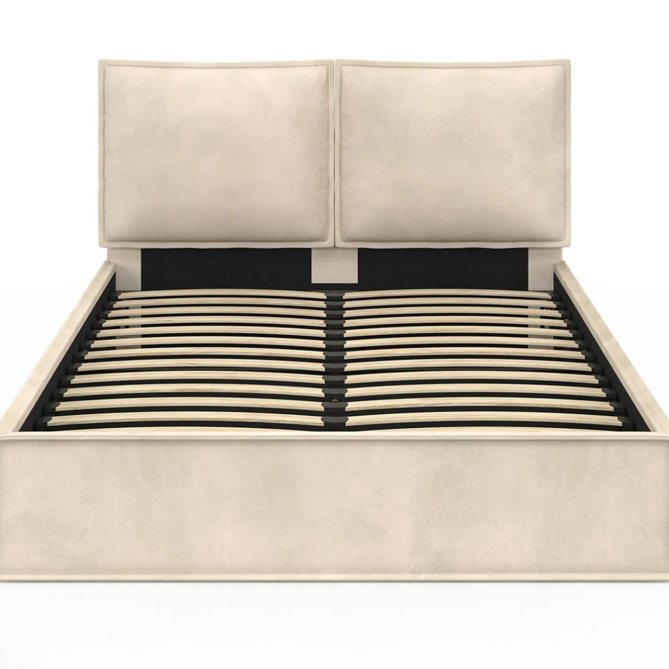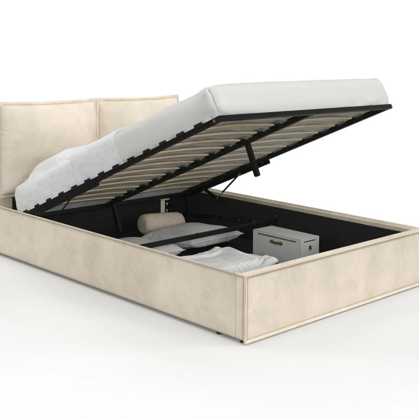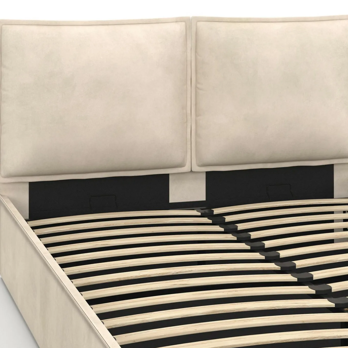 Lit coffre double PILOU avec tête de lit oreiller et sommier 140 x 190 cm velours beige