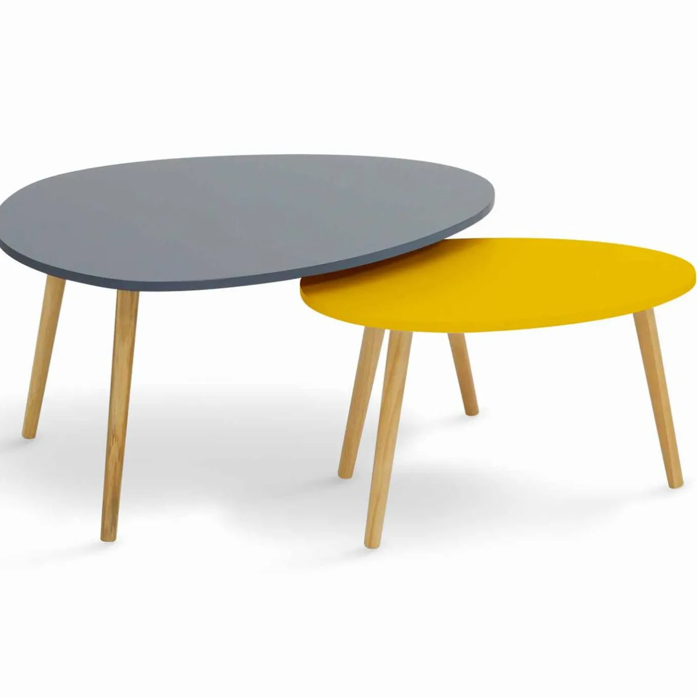 Lot de 2 tables basses gigognes GAIA laquées gris jaune scandinave