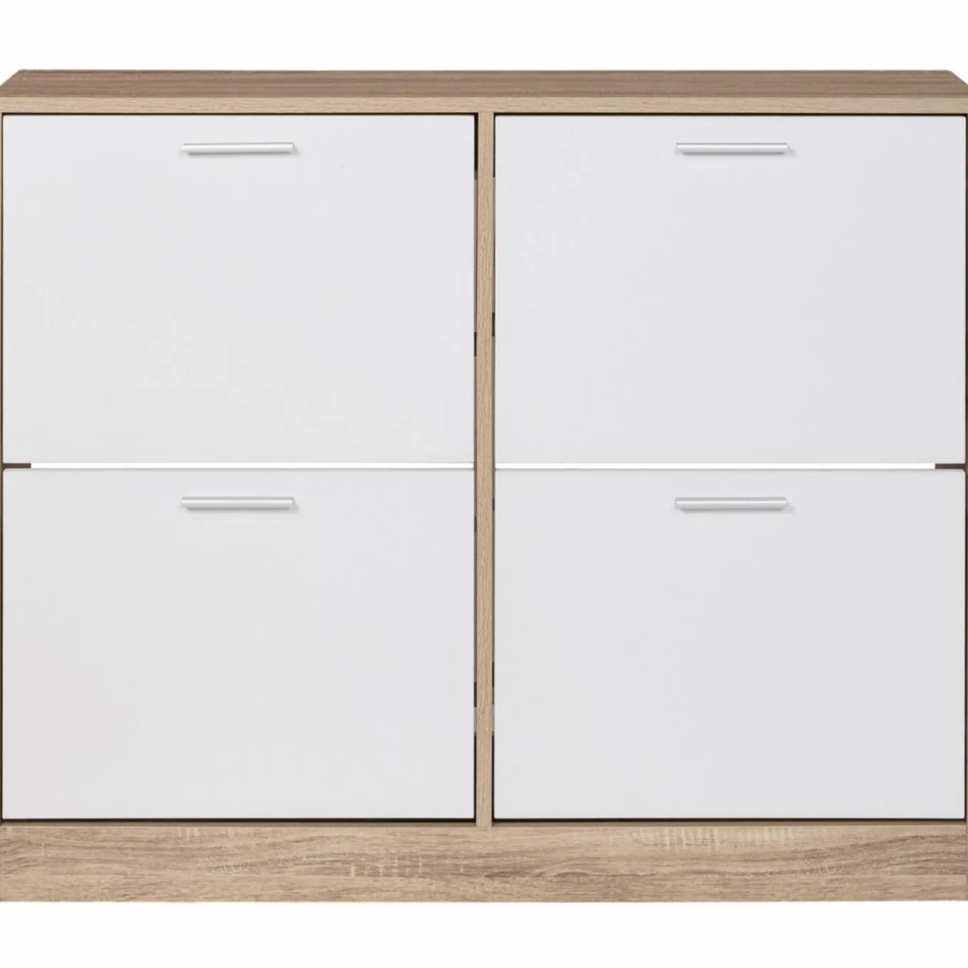 Meuble à chaussures KLARK horizontal imitation hêtre 4 portes blanches