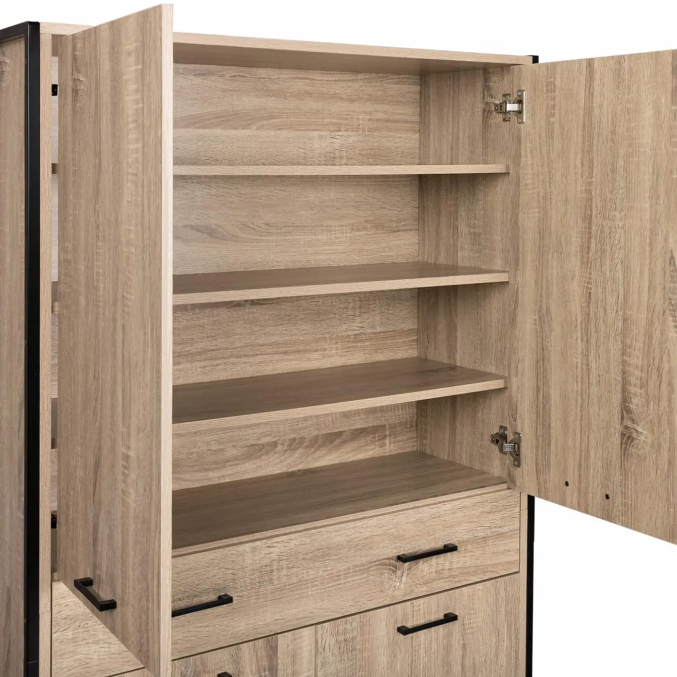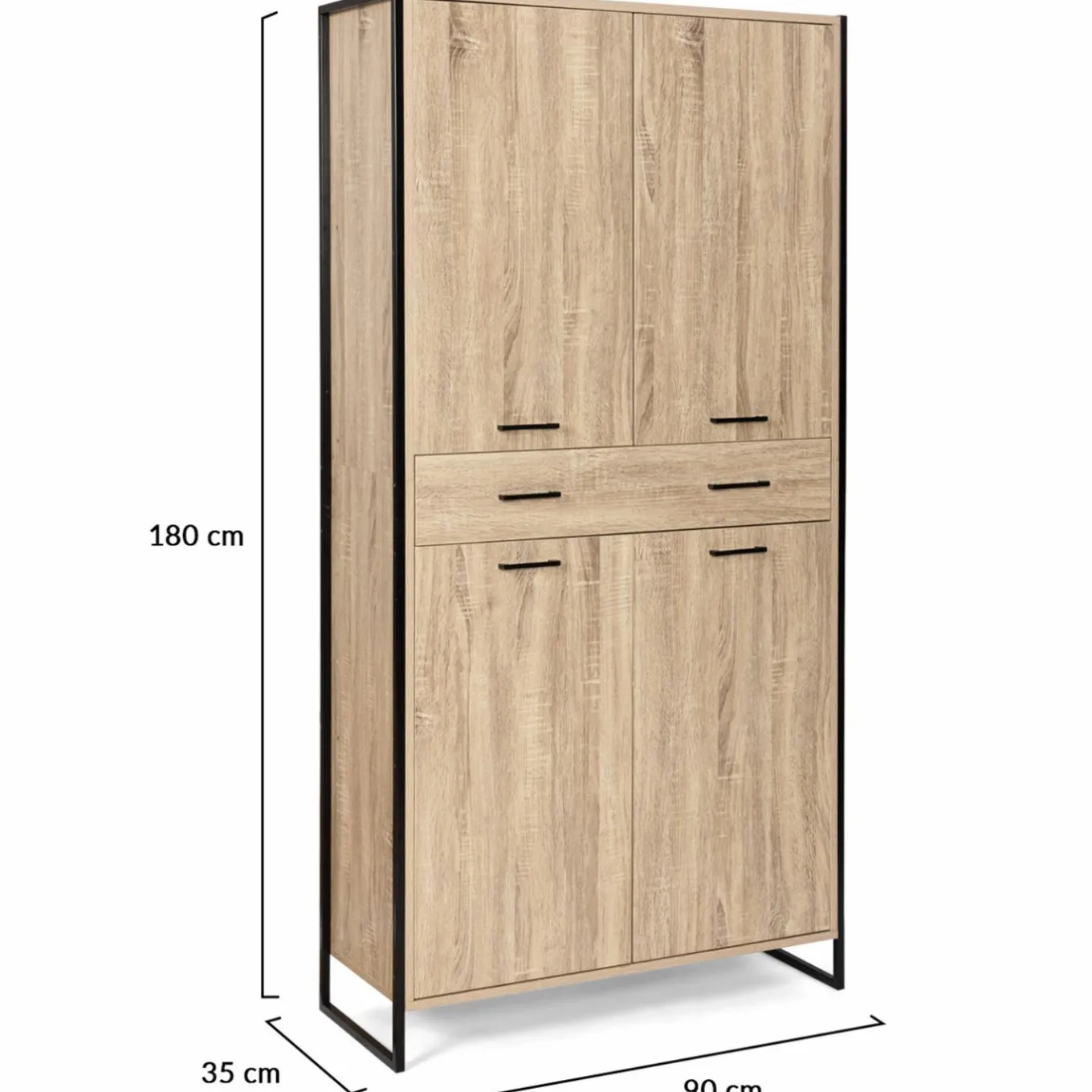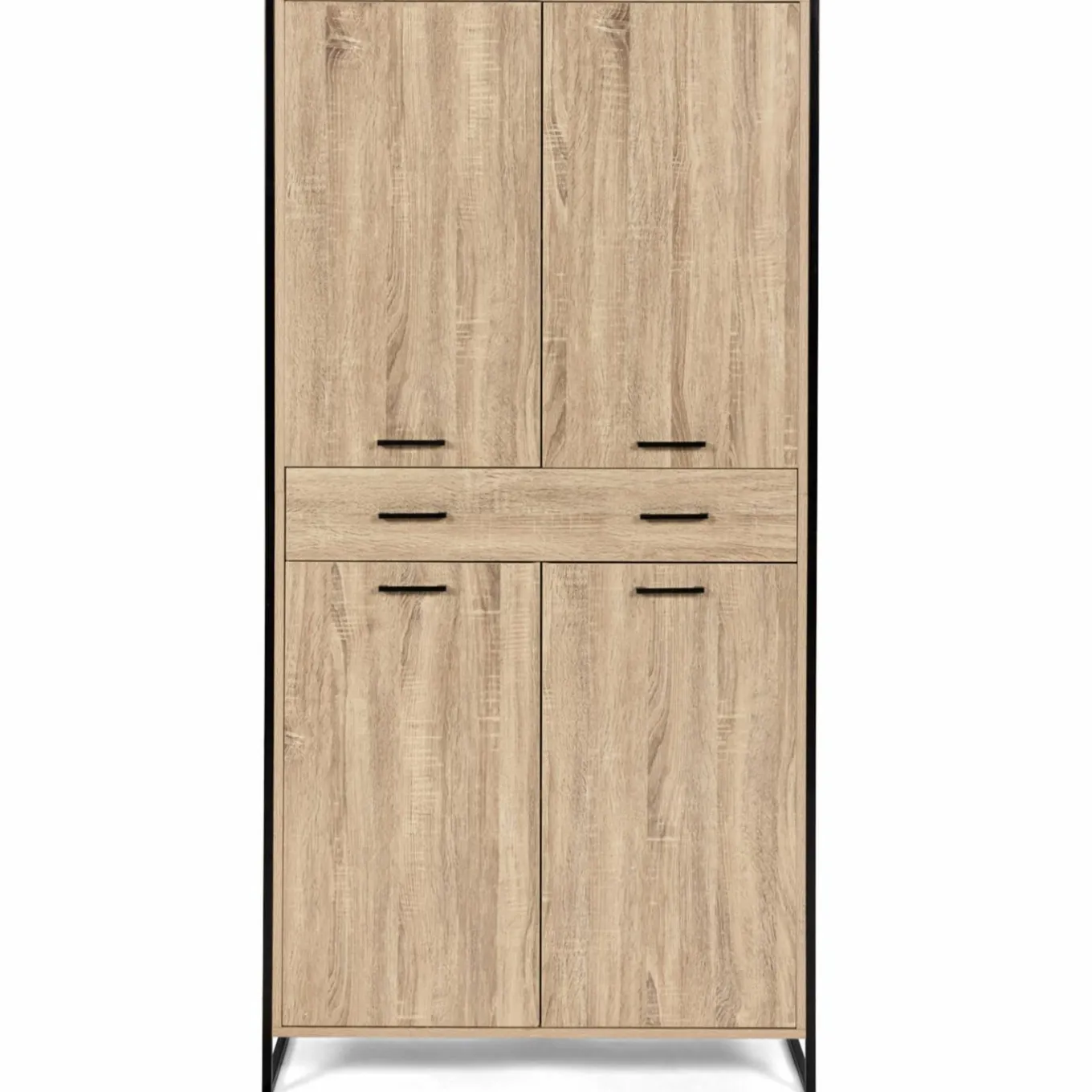 Armoire à chaussures 24 paires LUIS 4 portes avec tiroir design industriel H. 180 cm