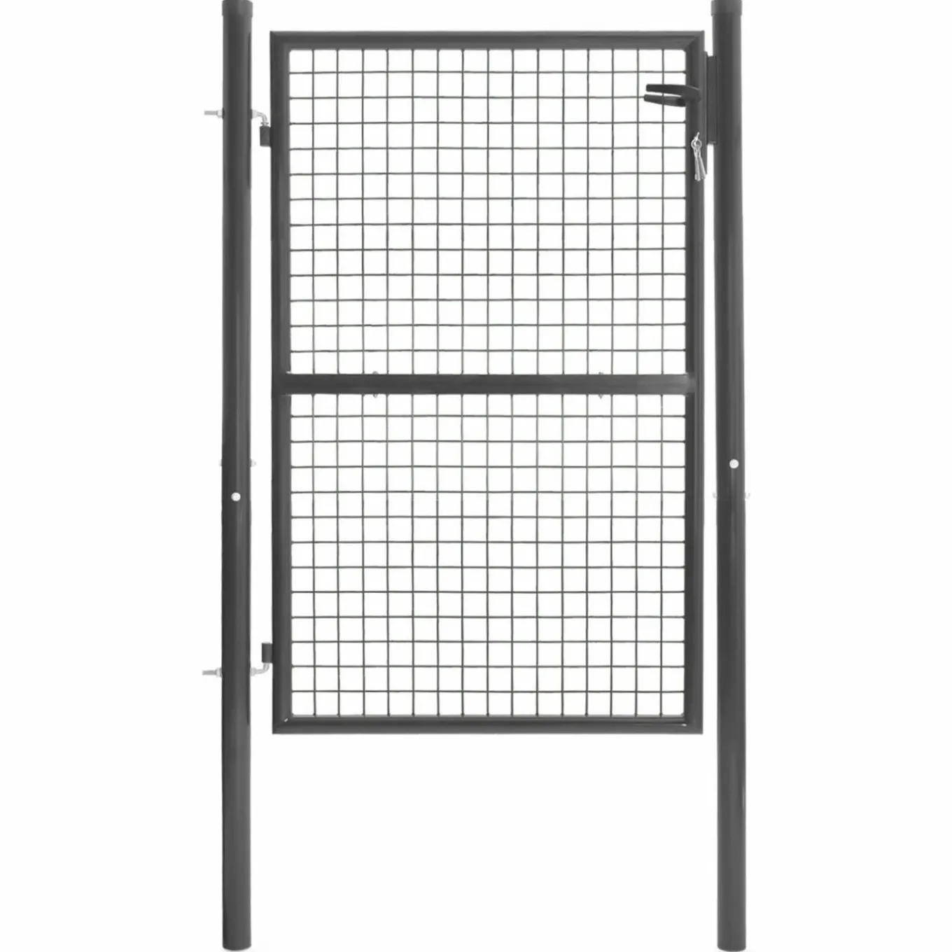 Portillon de jardin 105 x 125 cm en acier gris anthracite avec serrure et poignée