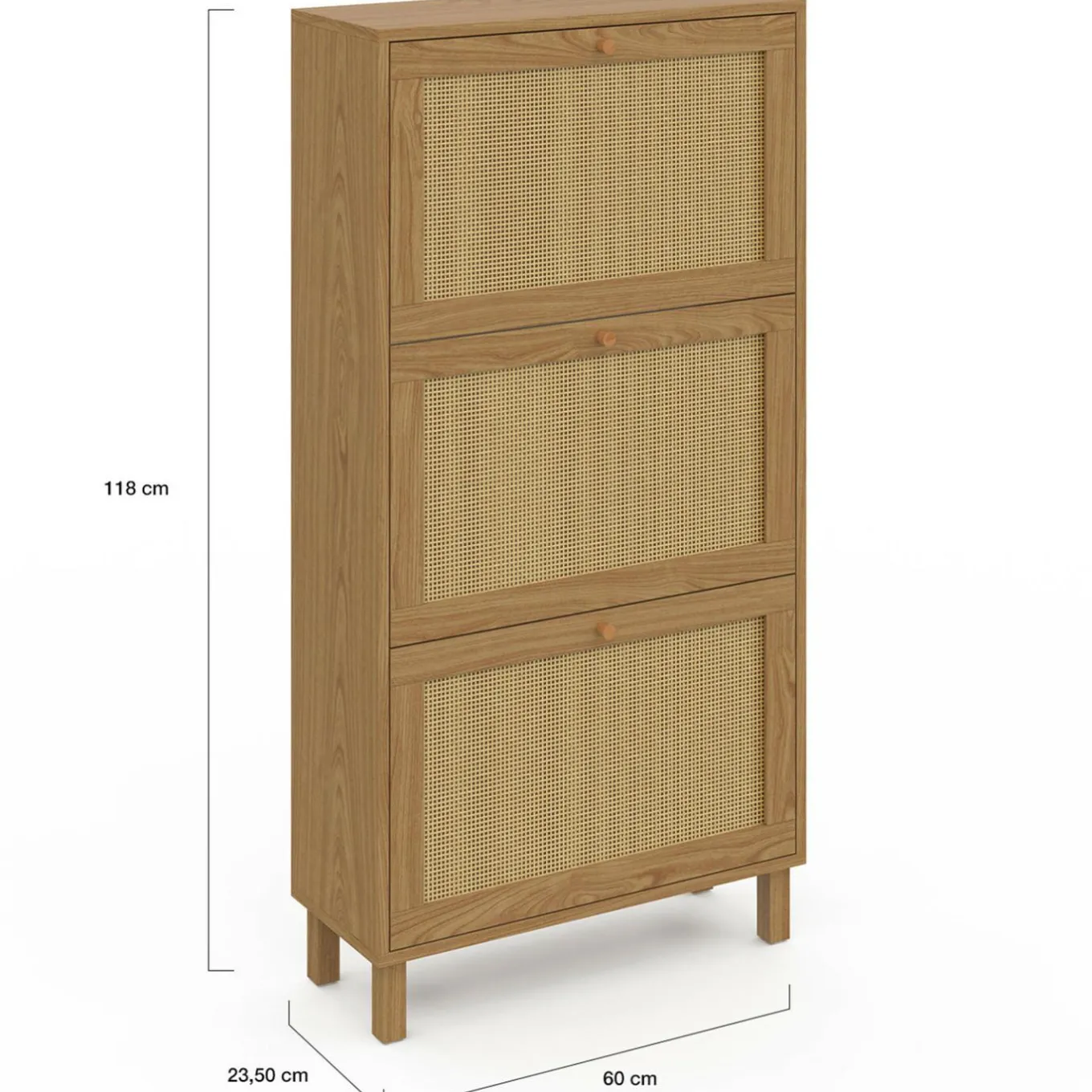 Dimensions du meuble à chaussures 3 portes effet naturel cannage HANAE