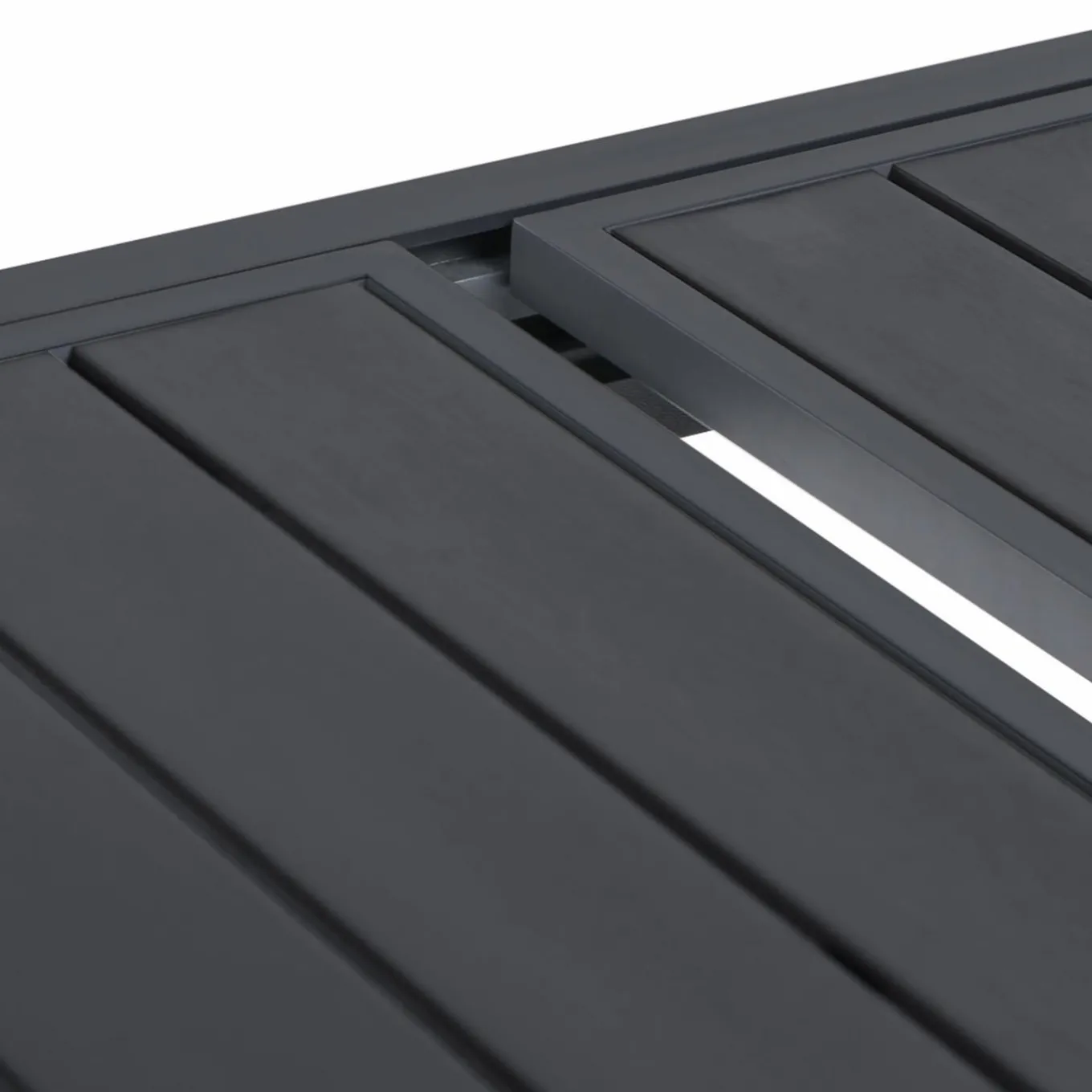La table de jardin avec rallonge POLY est fabriquée dans des matériaux de qualité afin de résister aux agressions extérieures. Sa structure est en acier et les planches en matière composite aspect bois gris anthracite.