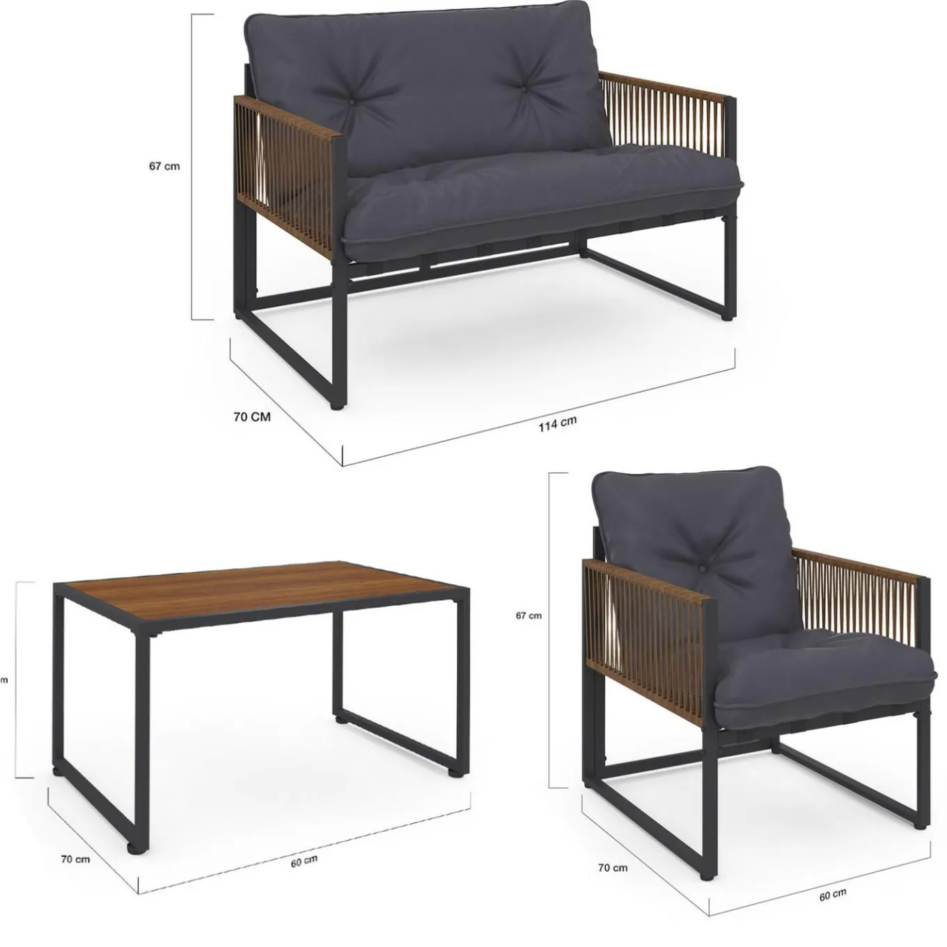 Dimensions du salon de jardin bas 4 places acier gris et cordage marron