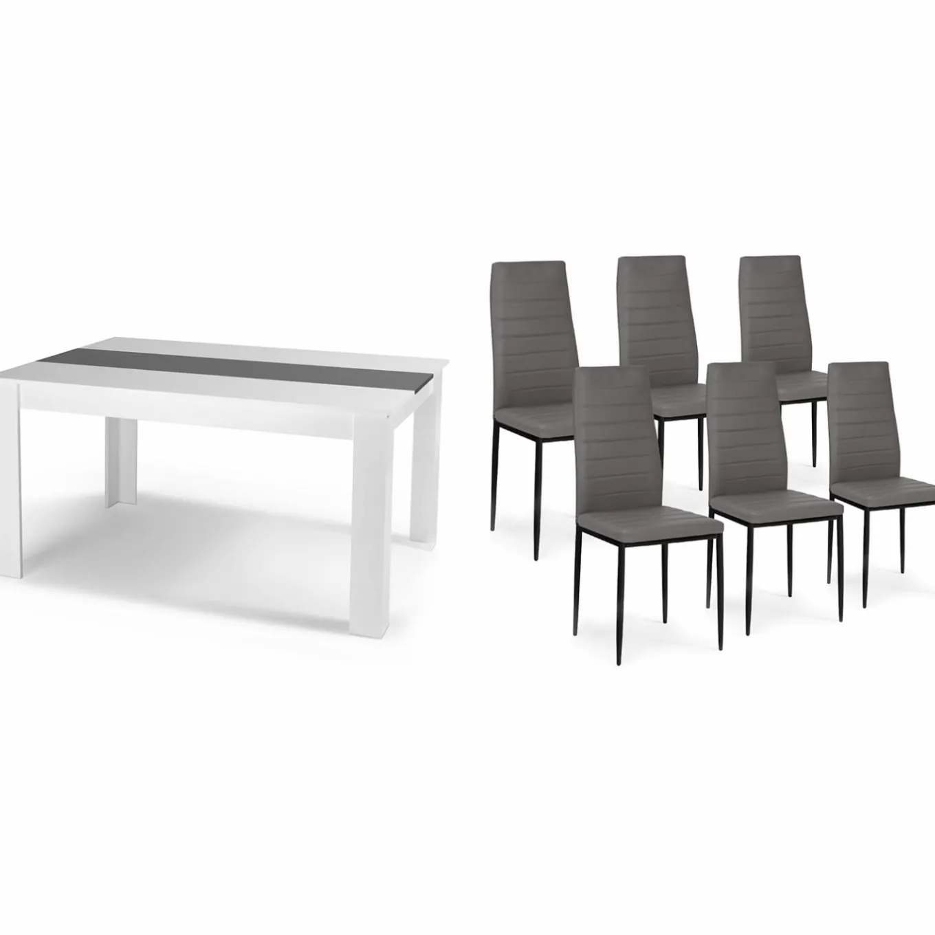 Ensemble table à manger GEORGIA 140 cm blanche et grise et 6 chaises ROMANE grises