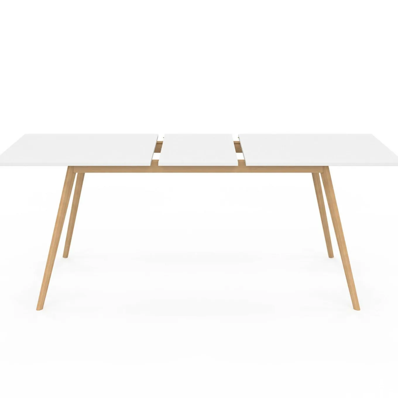 En effet, le plateau supplémentaire de 40 cm, complètement mobile et détachable, de la table à manger extensible scandinave blanche, se range facilement sous la table. Vous recevez du monde ? Rallongez le plateau de votre ensemble table et chaises 6 personnes.