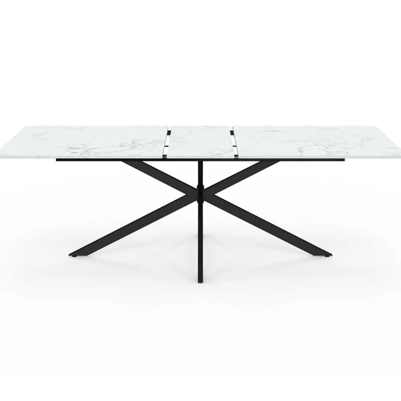 Table à manger extensible rectangle ALIX 8-12 personnes pied araignée noir plateau effet marbre blanc ALASKA 200-240 cm