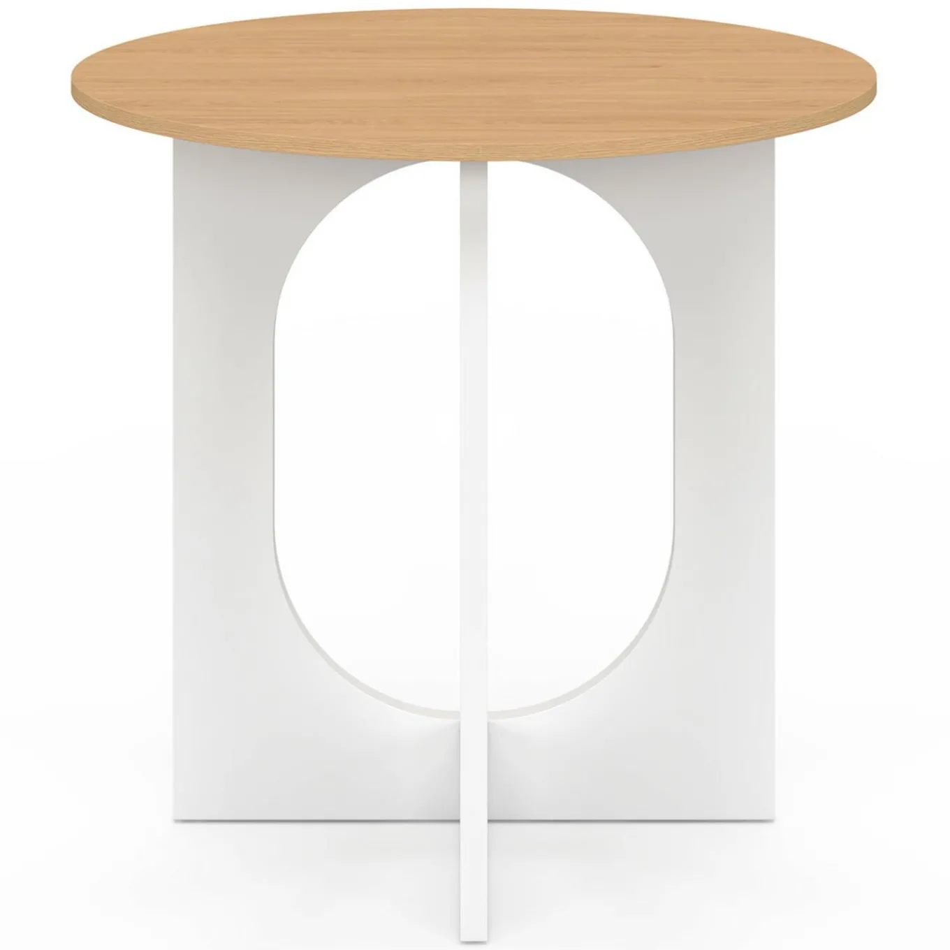 Table à manger fixe ronde ALOISE 4 personnes pied arc blanc et bois 80 cm
