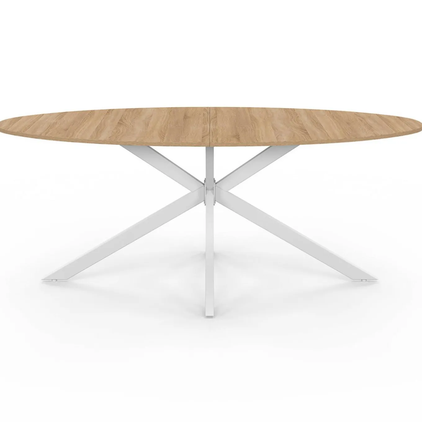 Table à manger ovale ALIX 10 personnes pied araignée bois et blanc 200 cm