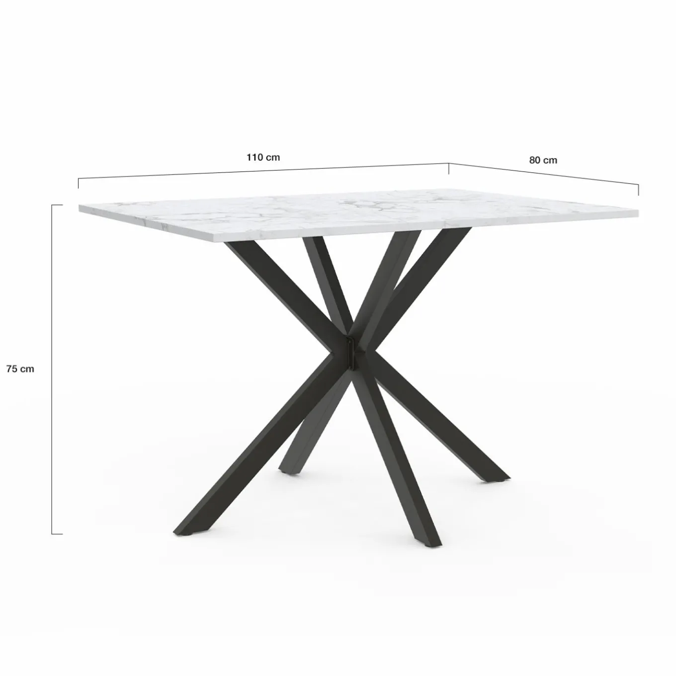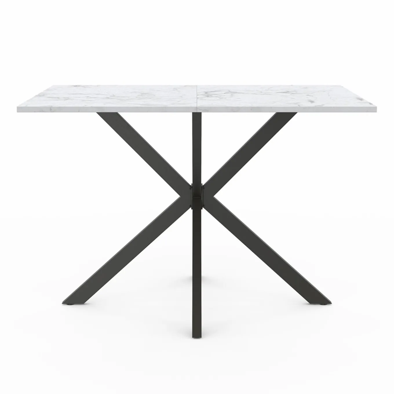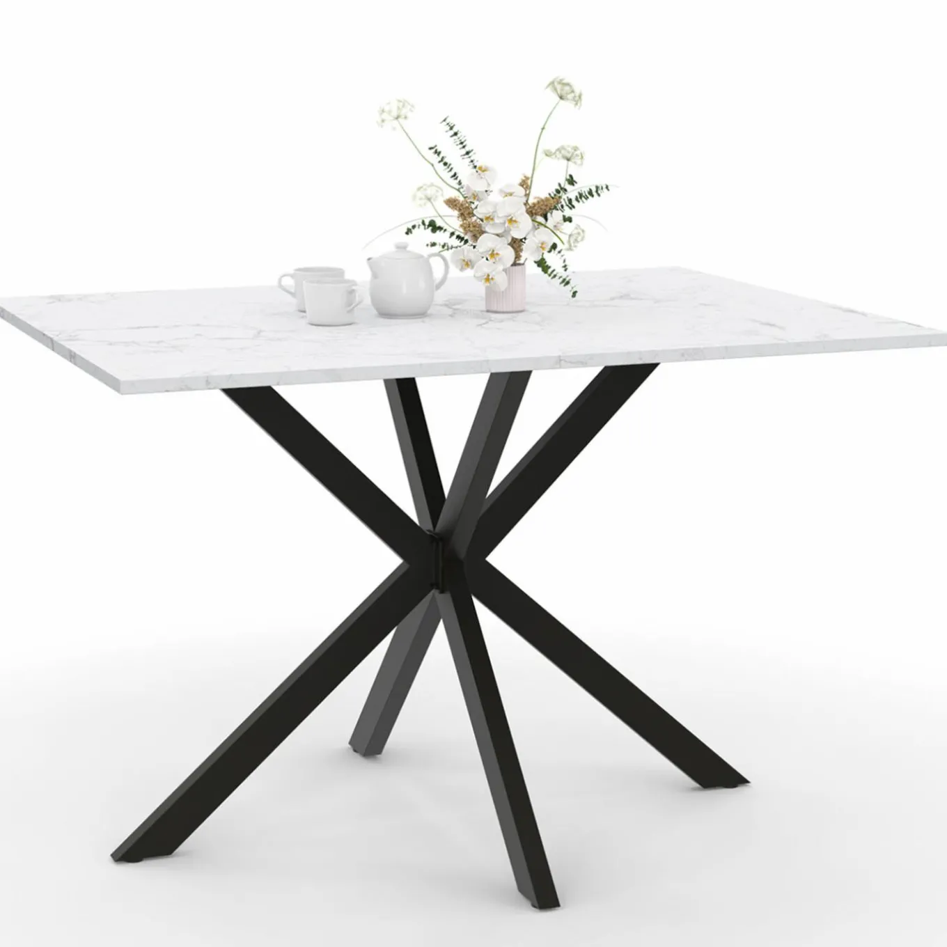 Table à manger rectangle ALIX 6 personnes pied araignée noir et plateau effet marbre blanc ALASKA 110 cm