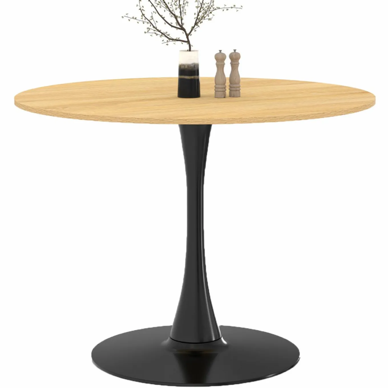 Table à manger ronde DALIA 4 personnes pieds tulipe bois et noir 100 cm