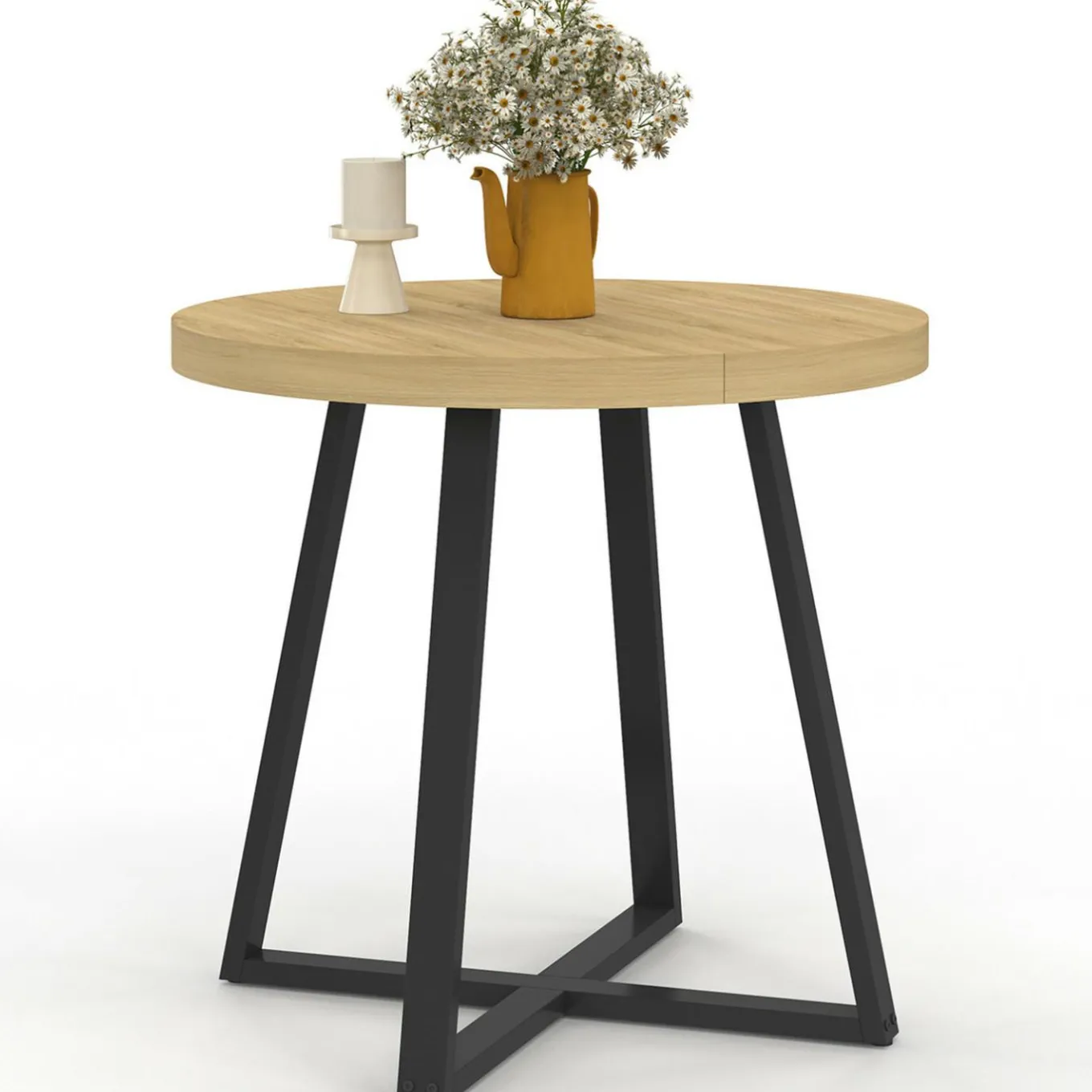 Alliez élégance et tendance avec notre table à manger ronde SELMA 4 personnes 80 cm. Cette table est le choix idéal pour ceux qui apprécient l’authenticité du bois combinée à la modernité du métal noir. Elle sera parfaite pour créer un espace repas chaleureux et convivial !