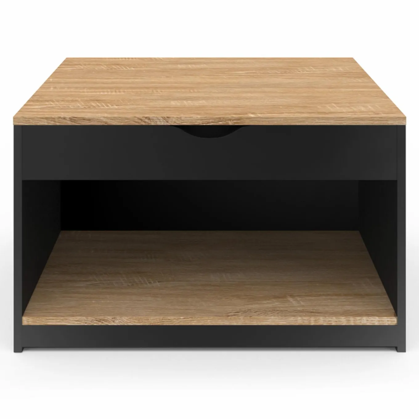 Table basse plateau relevable carrée ELEA avec coffre bois noir et façon hêtre
