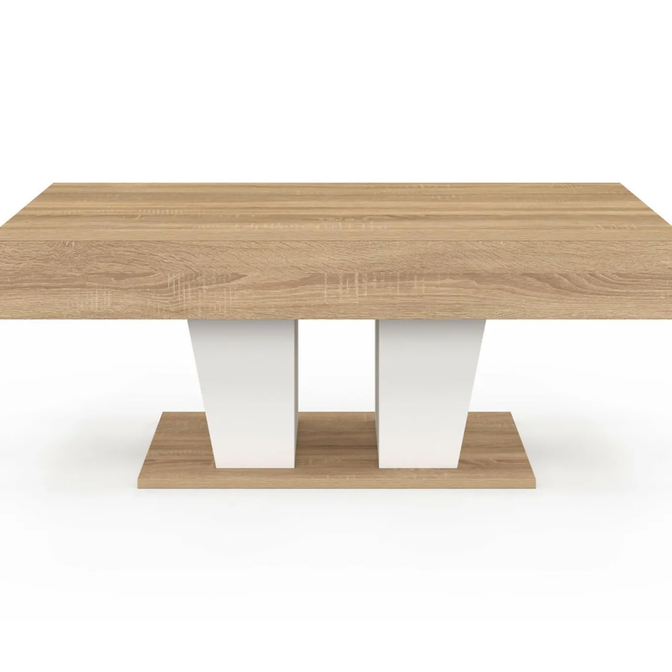 Une fois fermée, cette table basse bicolore bois et blanc apportera un style contemporain à votre intérieur. De plus, son design sobre et intemporel, confèrera une atmosphère chaleureuse et conviviale à votre espace salon, de quoi passer des soirées cocooning !