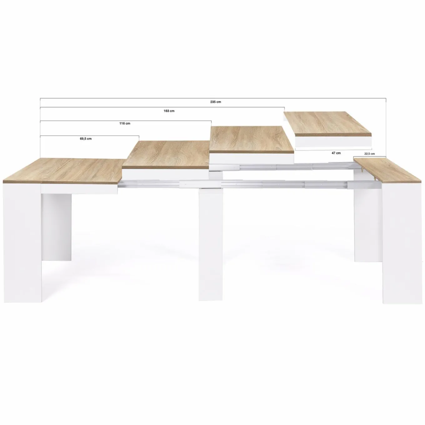 Table console extensible ORLANDO 10 personnes 235 cm bois blanc et façon hêtre