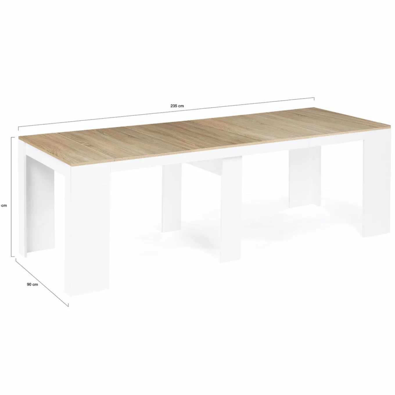 Dans sa version allongée, accueillez jusqu’à 10 personnes autour de cette table console avec rallonges aux dimensions généreuses de 235 cm x 90 cm.